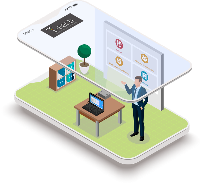 L’aula tradizionale rimane al centro del modello per attivare un percorso con elevato livello di motivazione e confrontarsi dal vivo con i colleghi